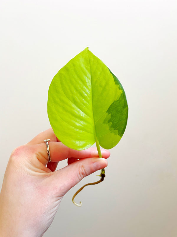 Een geworteld stekje van de Epipremnum Neon.