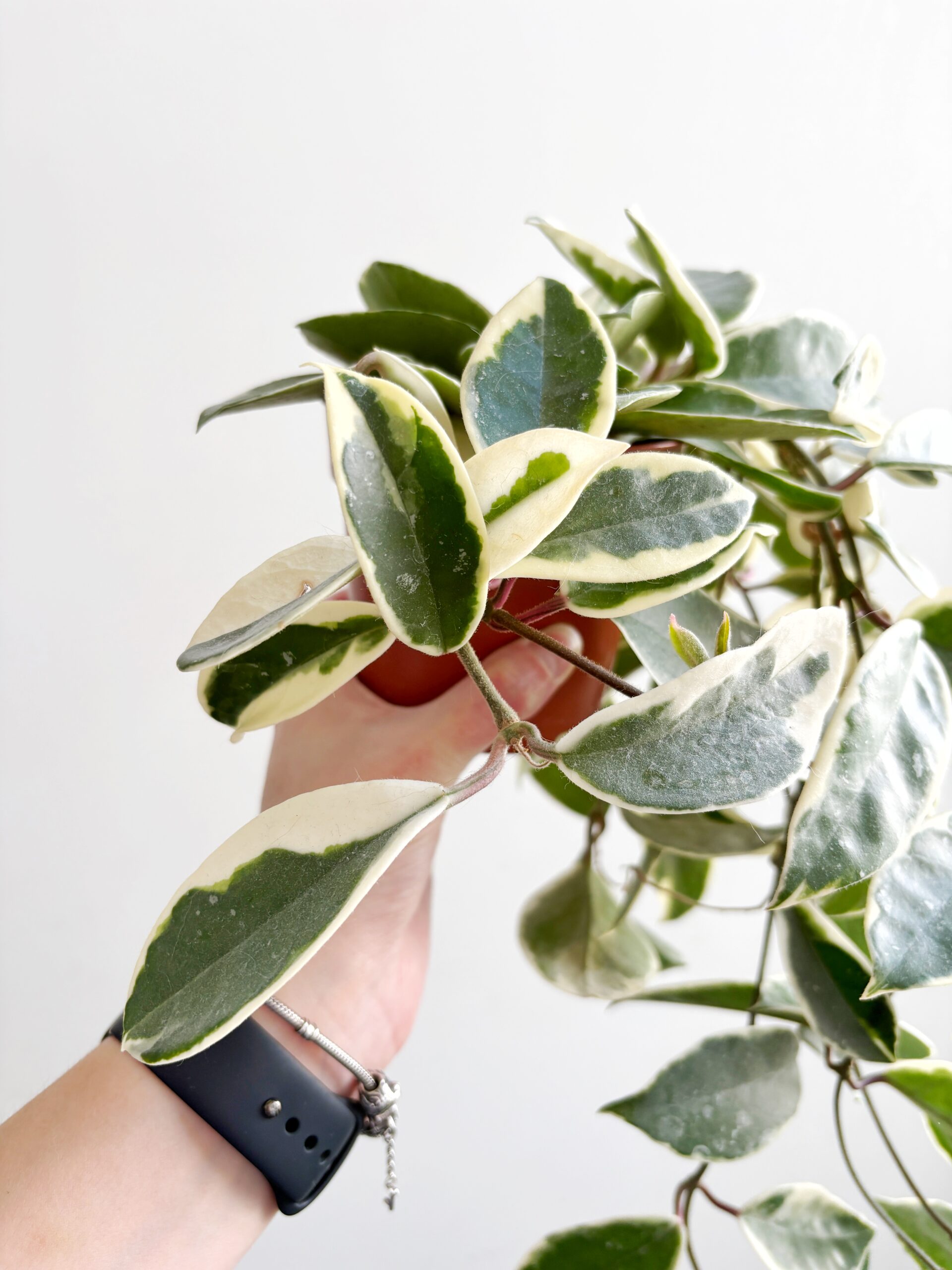 Een ongewortelde stek van de Hoya Carnosa Krimson Queen.
