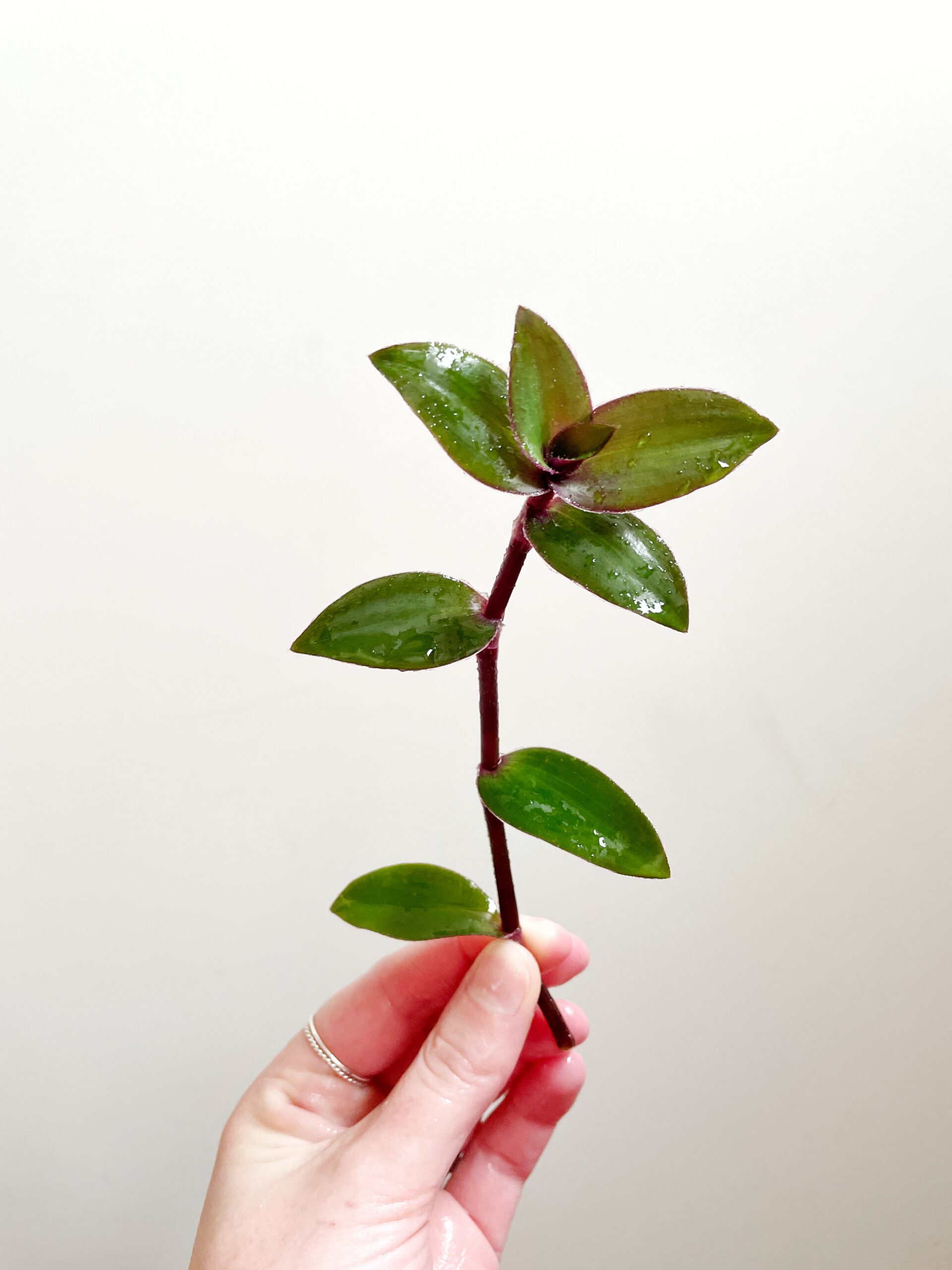 Een ongewortelde stek van de Tradescantia Fireness.